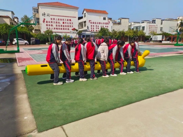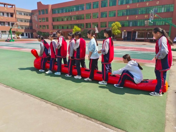 最激动人心的“向前冲冲冲”比赛将活动推向高潮。各小组全部成员骑在充气毛毛虫道具上努力向终点冲刺。若想取胜,大家必须步调一致、相互配合,才能快速前进。过程中,有的小组因节奏不一暂时落后,但成员们迅速调整,彼此鼓励。