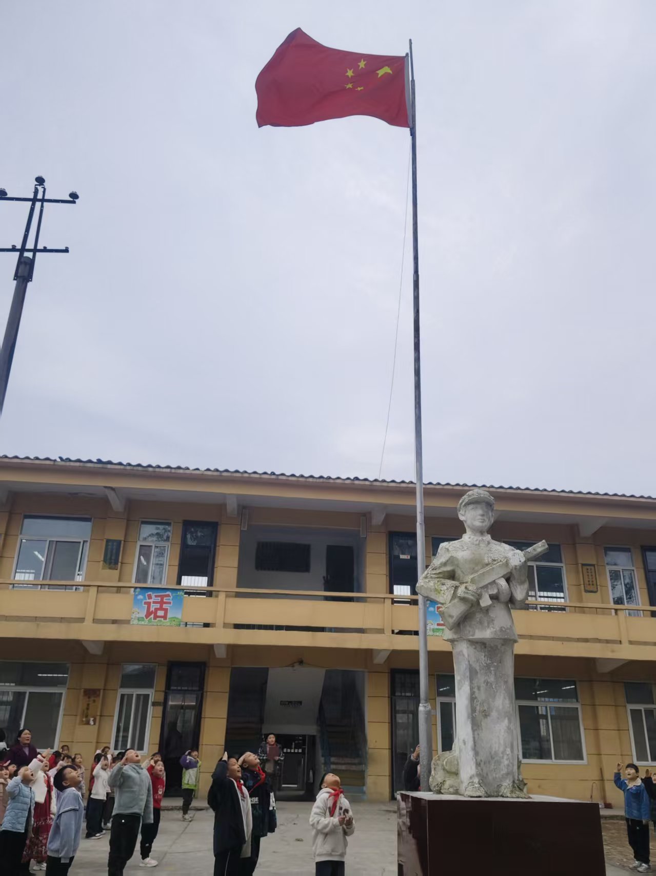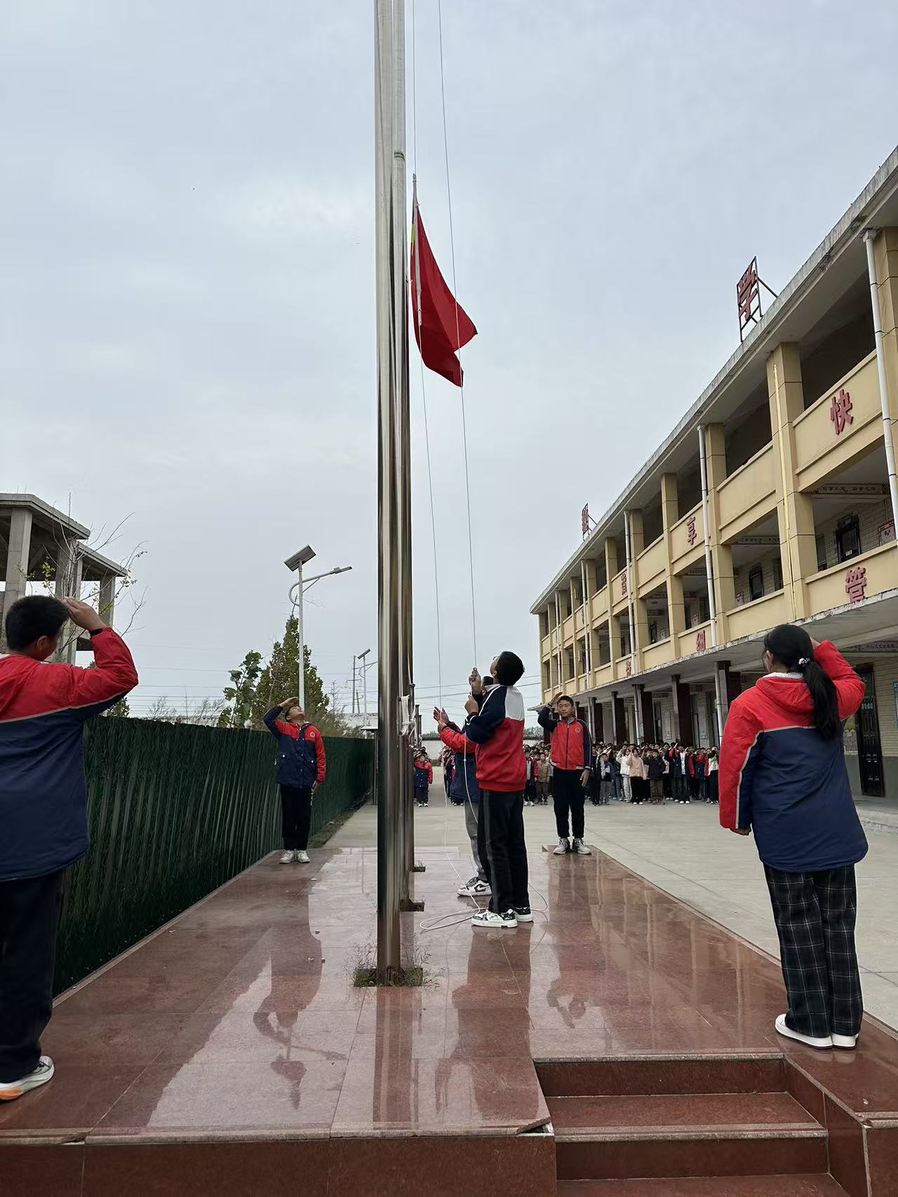在庄严的国歌声中,鲜艳的五星红旗冉冉升起,全体师生肃立注目,心中涌动着对祖国的热爱与敬意。