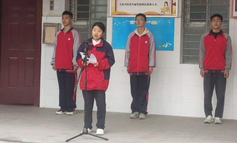 九四班的胡晨菲同学在升国旗仪式中进行了以《国旗下的誓言:继承先烈志 奋进学习路》为题的演讲。她在国旗下告诉同学们:站在鲜艳的五星红旗下,全体师生不禁回想起抗美援朝战场上志愿军将士的铮铮誓言——“保家卫国,视死如归”。作为新时代青年,同学们虽无需浴血沙场,但同样需要以先烈为镜,将这种精神传承转化为奋进学习的动力。