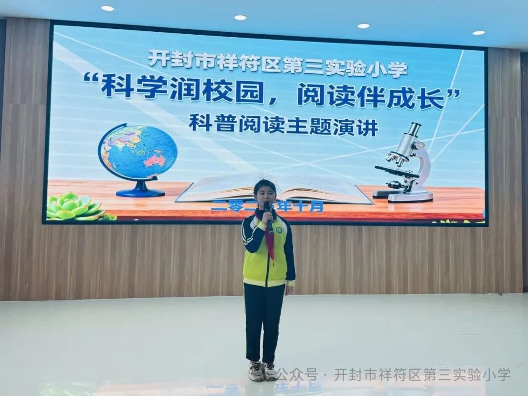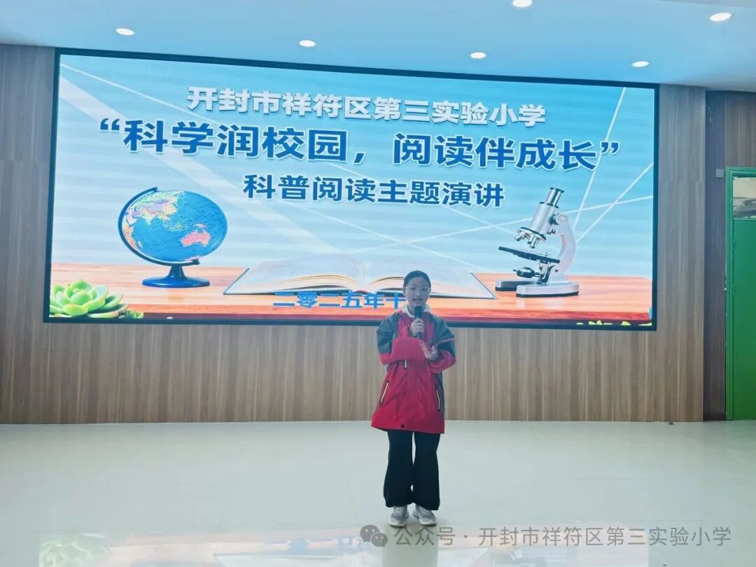 此次科普阅读主题演讲比赛,是学校推进“书香校园”建设的重要举措。通过“阅读+演讲”的形式,不仅激发了同学们的科学探索兴趣,提升了语言表达能力,更引导大家在广泛阅读中拓宽视野、涵养科学精神。未来,开封市祥符区第三实验小学将继续搭建更多特色阅读活动平台,让阅读成为习惯,让科学点亮梦想,助力同学们在书香与科学的滋养中茁壮成长!