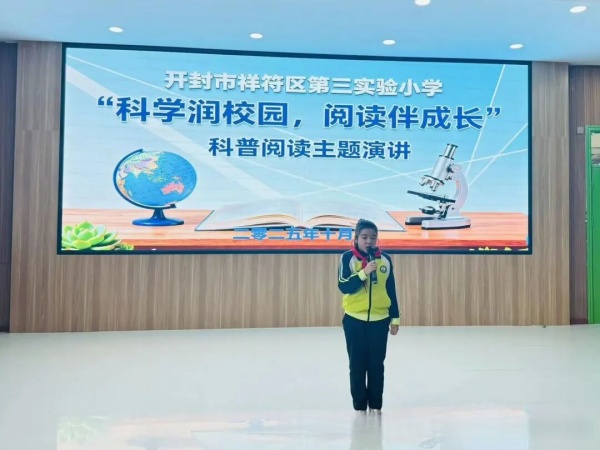 此次科普阅读主题演讲比赛,是学校推进“书香校园”建设的重要举措。通过“阅读+演讲”的形式,不仅激发了同学们的科学探索兴趣,提升了语言表达能力,更引导大家在广泛阅读中拓宽视野、涵养科学精神。未来,开封市祥符区第三实验小学将继续搭建更多特色阅读活动平台,让阅读成为习惯,让科学点亮梦想,助力同学们在书香与科学的滋养中茁壮成长!