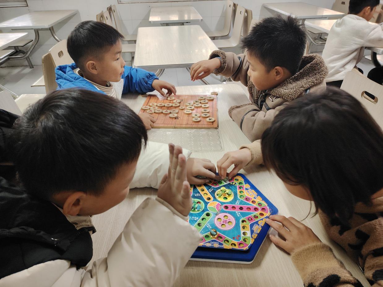 当思维的火花跳出课本,棋类活动成为另一片精彩的天地。方寸棋盘间,专注的眼神、轻轻移动的棋子,都是智慧的对话。两个男孩对弈的身影,或是周围伙伴的轻声讨论,都让活动室里充满了“静中有动”的独特魅力。