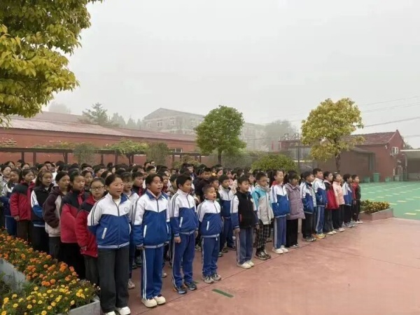 清晨,各校区师生准时集合。随着国歌声响起,五星红旗缓缓升起,全体师生肃立敬礼。这一刻,爱国情怀与校园安全责任感相互交融,为活动奠定庄重基调。