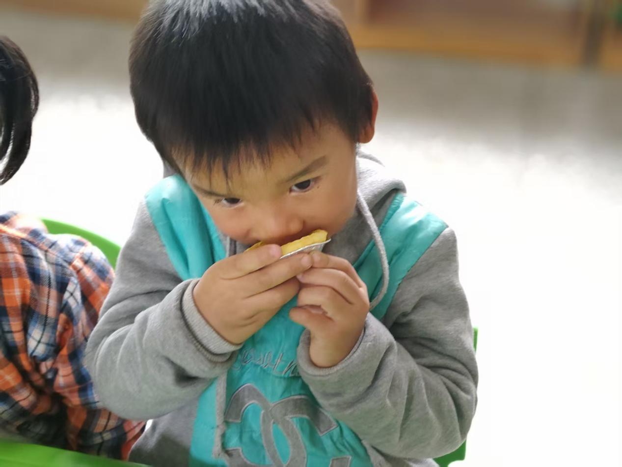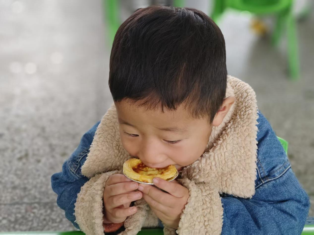 “叮!”随着烤箱计时器清脆的响声,金灿灿、香喷喷的蛋挞出炉了!孩子们看到自己的劳动成果,欢呼雀跃。待蛋挞稍稍放凉后,大家品尝着自己亲手制作的蛋挞,脸上洋溢着无比幸福和自豪的笑容。“老师,太好吃了!”“这是我吃过最香的蛋挞!”许多平时不爱吃鸡蛋的小朋友,也津津有味地吃完了一整个。