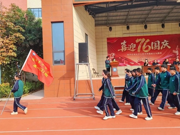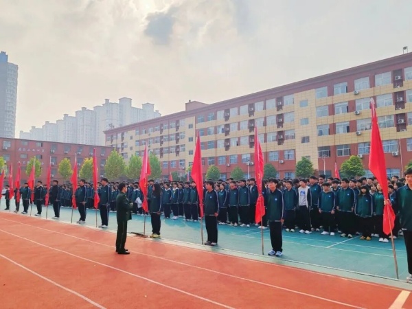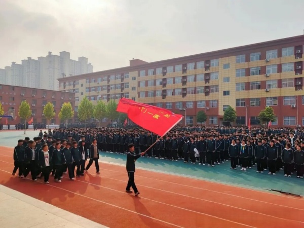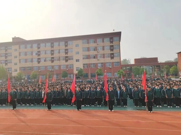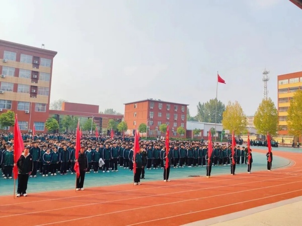全体人员肃立,庄严的《义勇军进行曲》响彻操场。鲜艳的五星红旗冉冉升起,师生们怀着崇敬之心齐声高唱,爱国情怀与奋进之志在歌声中凝聚升华。