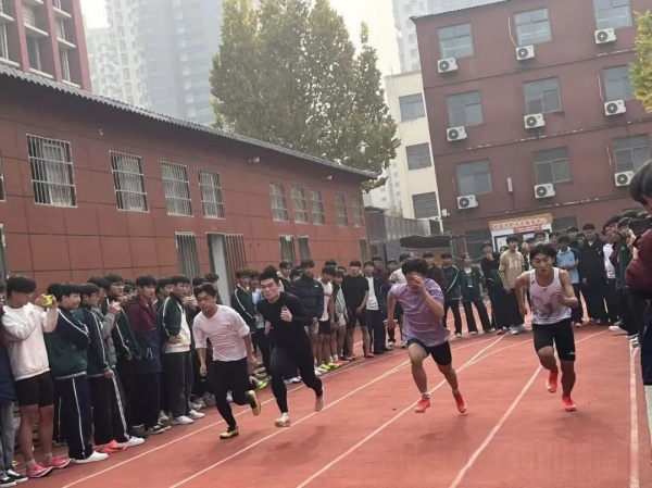 50米、100米、200米赛道上,发令枪一响,运动员们如离弦之箭般冲出起跑线。紧绷的肌肉、摆动的双臂、急促的呼吸,每一处细节都透着全力以赴的决绝。耳畔是呼啸的风声与师生们震耳欲聋的呐喊,脚下的塑胶跑道仿佛也在为少年们的冲刺助力,他们用速度诠释青春,用拼搏书写热血。