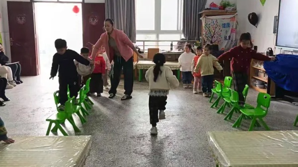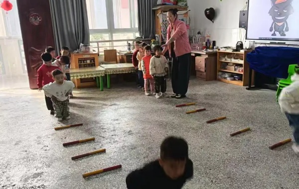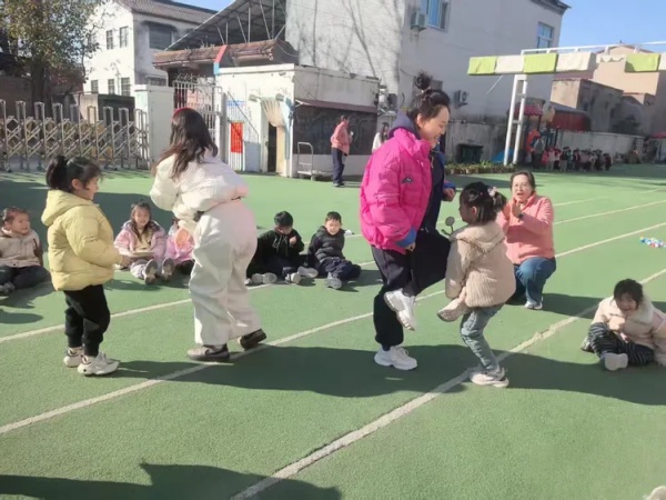 “老鹰”发起俯冲,展开激烈攻势;“鸡妈妈”全力守护,左拦右挡;“小鸡”队伍如游龙般灵活摆动,紧随鸡妈妈闪转腾挪。闯关游戏激情热烈,操场上回荡着孩子们的惊叫、欢笑与加油声,汇成一首充满生命力的交响曲!