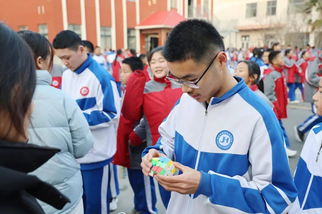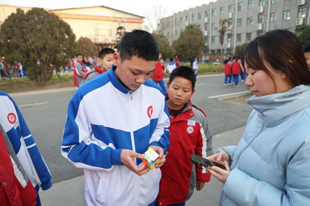 下午四时整,三十六个游戏点位如繁星般散落在操场、路旁和前广场,每处都围满跃跃欲试的身影。竞技类赛区人声鼎沸。“两人三足”的搭档们在呐喊中调整步伐;“拔河”的队伍在号子声中倾力以赴。益智区则静中有巧。“谜语”摊前众人蹙眉深思;“转动乾坤”魔方挑战处,参赛选手手指翻飞,转眼便拼出完整色块。才艺展示的舞台区更是星光汇聚,清亮的歌声、灵动的舞姿,赢得了围观同学最真诚的掌声。