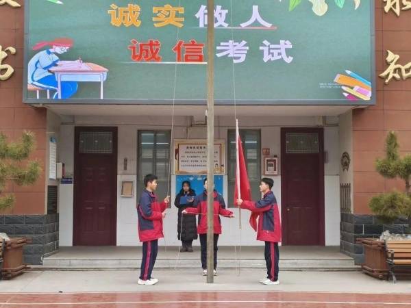 为传承中华民族的传统美德,开展诚信教育,2026年1月26日星期一,开封市祥符区实验中学举办了以“诚实做人 诚信考试”为主题的升国旗仪式。