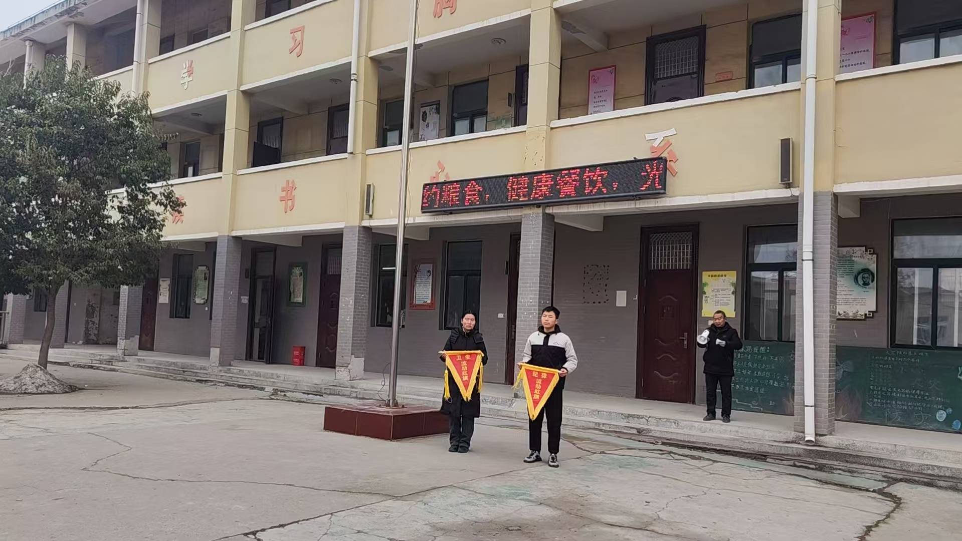 上一周由于下雪无法上操,他把的纪律、卫生、就餐、就寝情况总结给大家,并要求同学们善始善终、尽善尽美的把本学期各项工作圆满完成。升旗仪式鼓斗志,扬士气,全体同学个个精神抖擞……