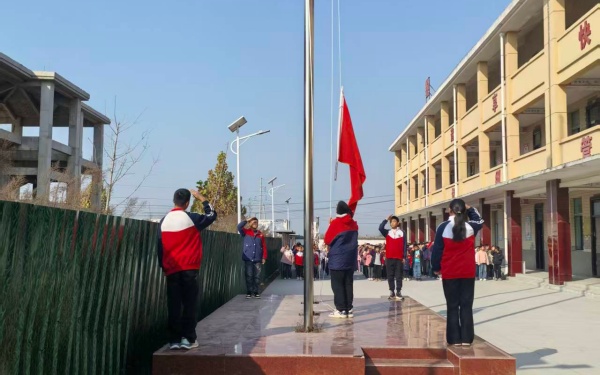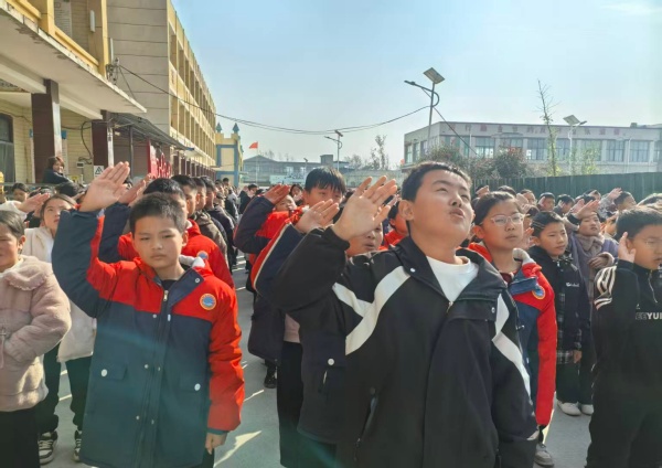 五星红旗在庄严的国歌声中冉冉升起。全校师生肃立注目,心中涌动着对祖国的赤诚与对平安的祈愿。