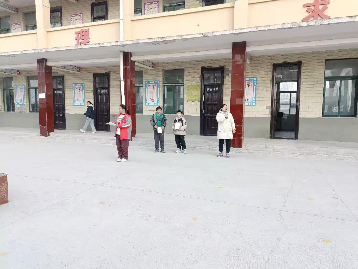 德育副校长崔敬波与体卫艺专干邢守丽老师共同为上周在卫生与纪律方面表现突出的班级颁发“流动红旗”。鲜红的旗帜不仅是荣誉的象征,更是对全体同学养成良好习惯、共建文明校园的鼓励与鞭策。