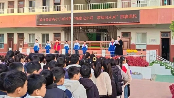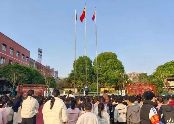 在熟悉的国歌声中,升旗仪式庄严开启。当鲜艳的五星红旗迎着朝阳冉冉升起,仿佛也为我们的“育英求知号”火箭注入了最强大的动力。瞧,同学们专注的眼神里,闪烁着对知识的渴望,那是对未知宇宙最真诚的眺望。