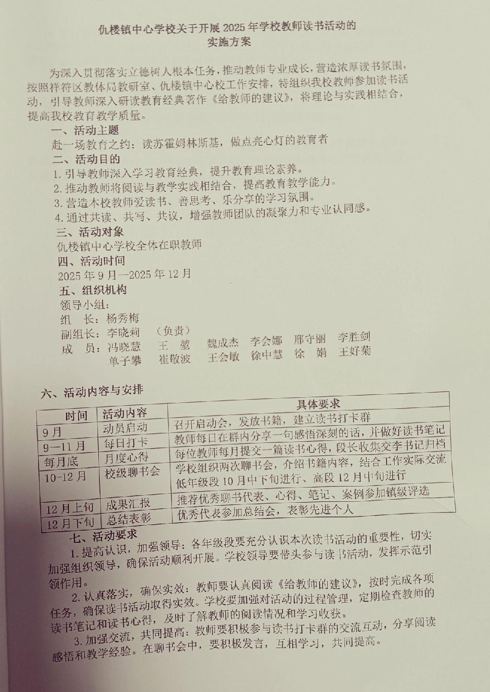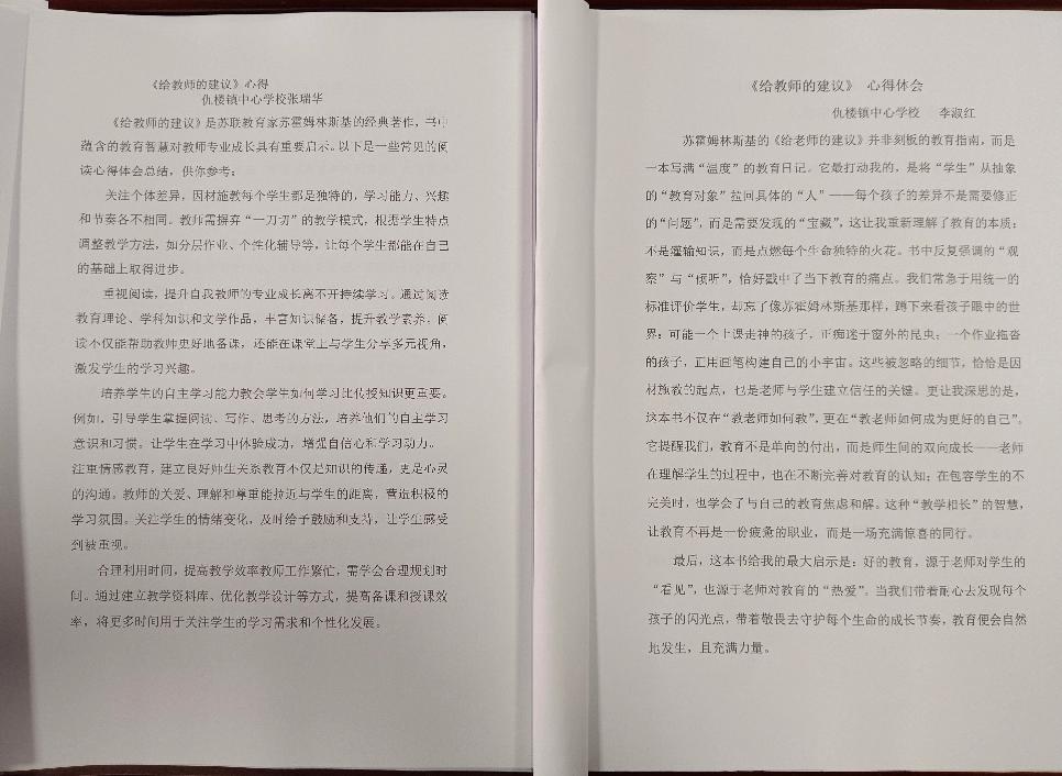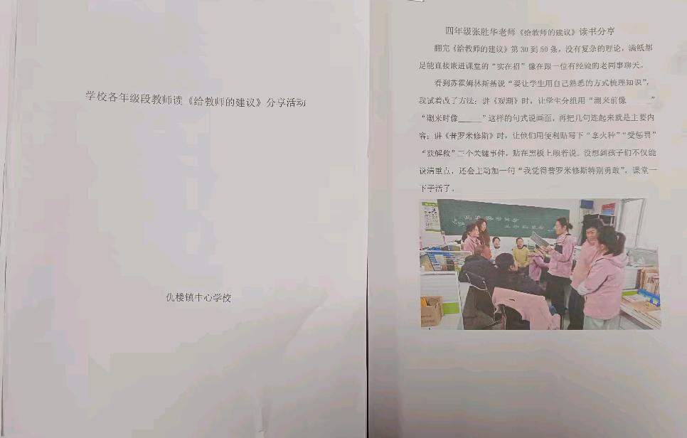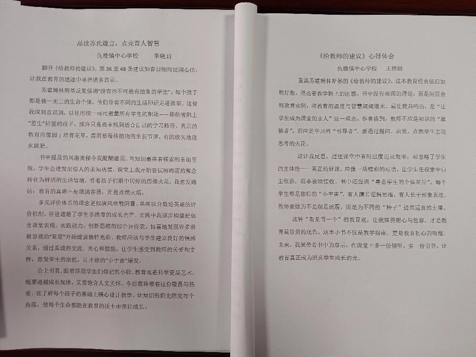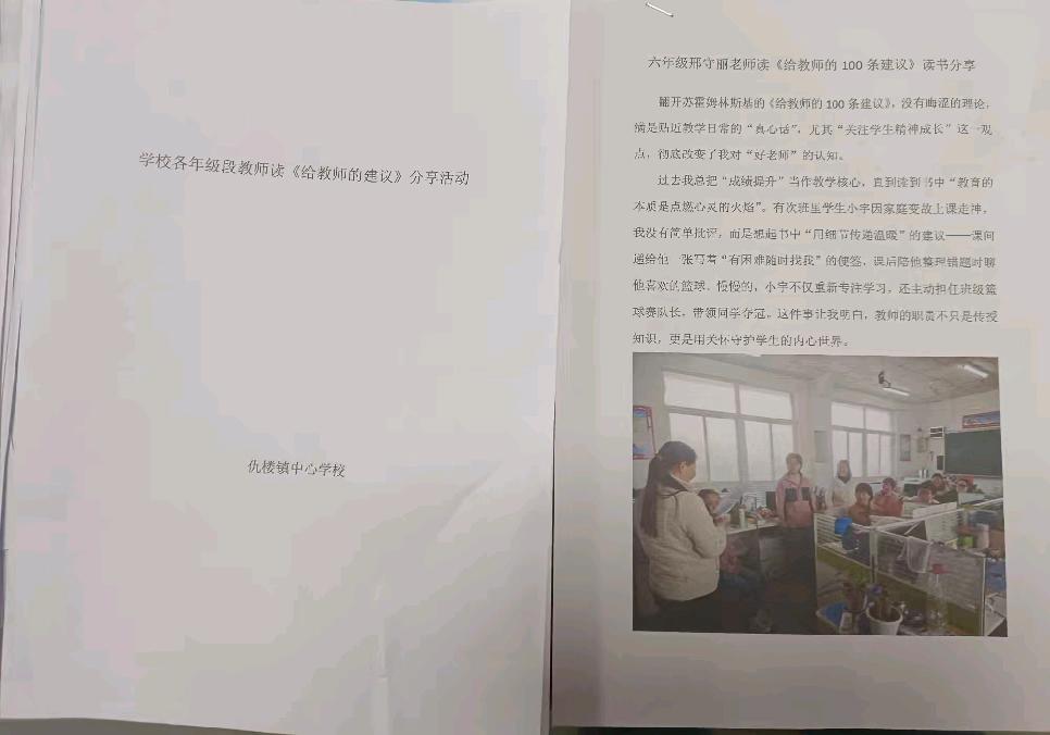 最是书香能致远,腹有诗书气自华。教育是一场温暖的修行,而书籍是修行路上的指路明灯。为提升教师专业素养,破解教育教学困惑,仇楼镇中心学校以苏霍姆林斯基的经典著作《给教师的100条建议》为核心,启动系列专题读书活动,让教育名著中的智慧浸润课堂、滋养心灵,助力教师在专业成长的道路上稳步前行。