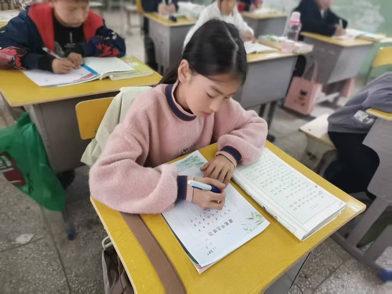 活动在教室内有序开展,学生们伏案书写,神情专注。大家保持正确的握笔姿势,一笔一划认真完成每一个字,这种沉浸式的书写氛围,让学生们能够静下心来,感受文字的美感。