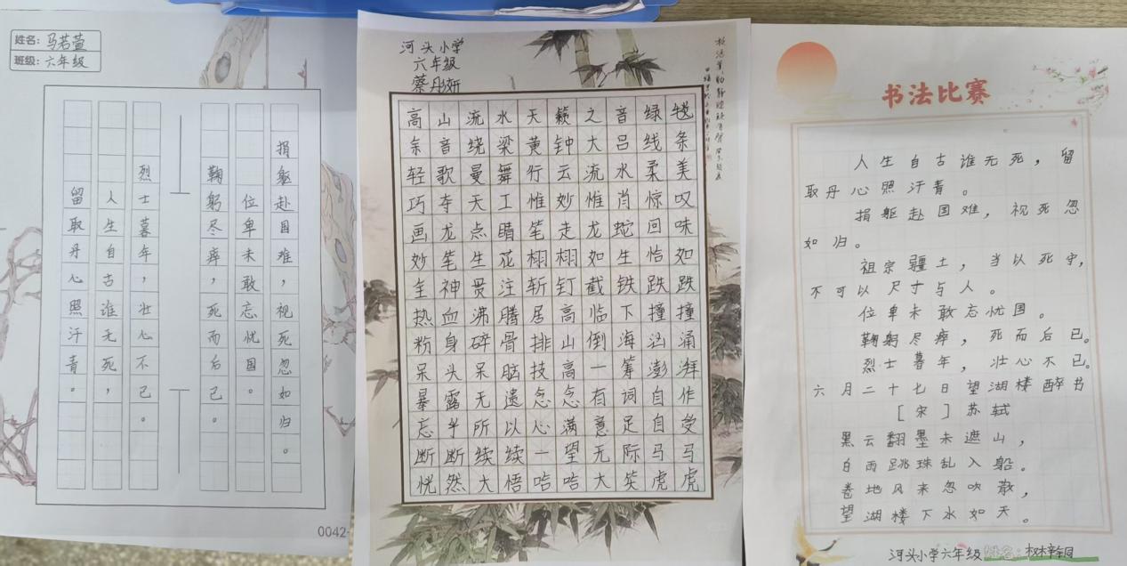 通过这次书法比赛社团活动,刘店乡河头小学的孩子们不仅提升了书写技巧,更感受到了文字的美感。未来我校社团将定期开展各种练习和比赛,欢迎更多同学加入,一起感受小学生活中的美好时光。