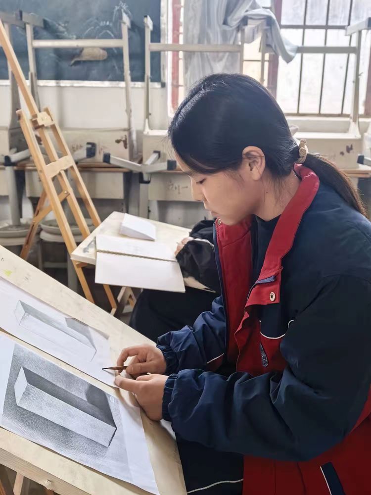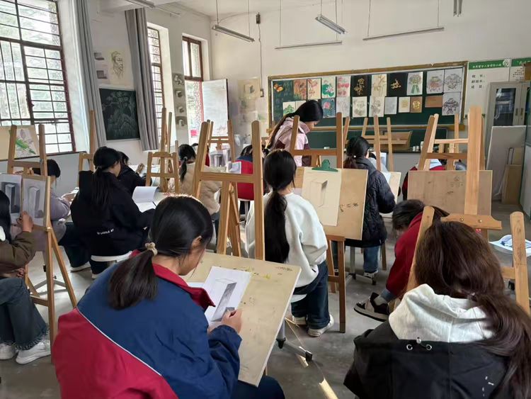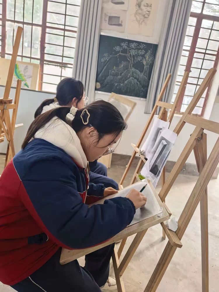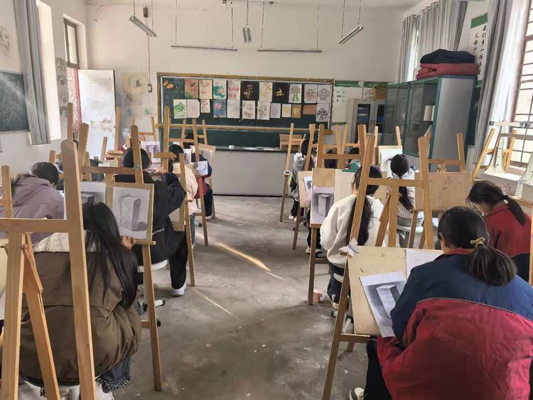 美术社团的教室里,学生们专注于绘画学习和创作。无论是基础练习还是自由创作,都体现着对艺术的热爱和追求。