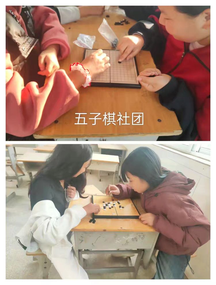 五子棋社团的成员们在教室内进行对弈,两人一组,在棋盘上认真思考每一步的布局。大家专注于棋局,时而沉思,时而落子,展现出对策略游戏的喜爱。