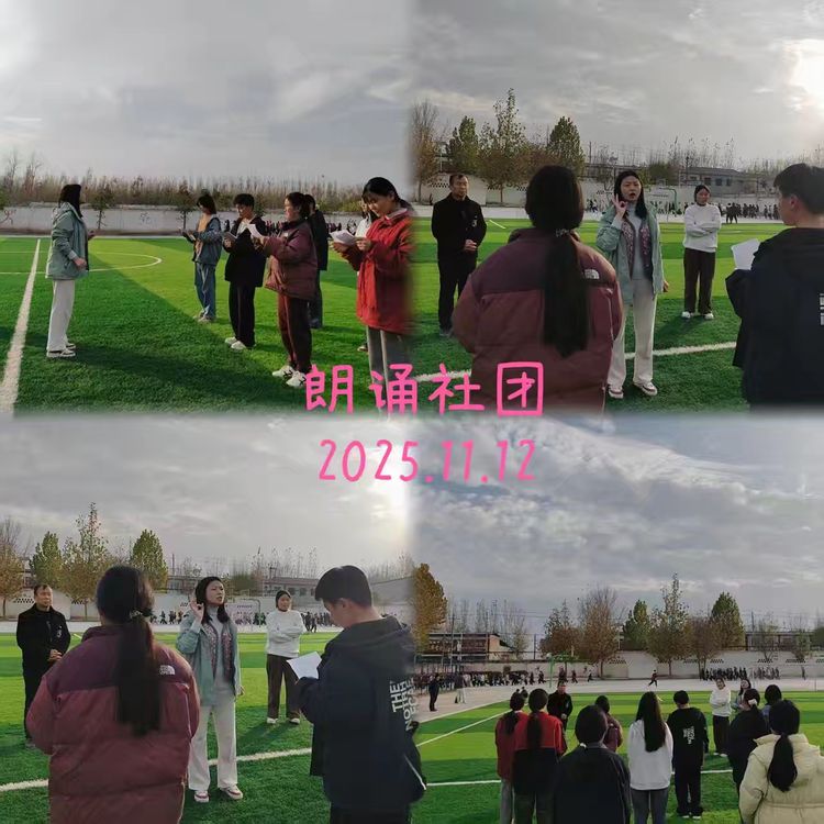 朗诵社团选择在足球场开展活动,成员们在老师的辅导下练习朗诵技巧。开阔的场地让声音传播得更远,大家在轻松的环境中提升语言表达能力。