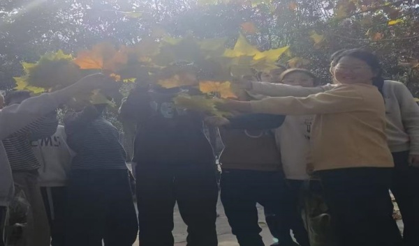 秋日温暖的阳光洒满校园。美景,我们当然不能辜负,于是老师让孩子们放下课本,走出教室的方寸天地,奔赴与秋天的约会。