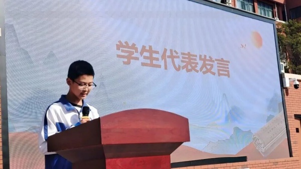 黄思扬代表全体同学,向所有辛勤付出的老师们致以最诚挚的感谢。并承诺:我们将把这份深深的感激之情,转化为实实在在的行动。在今后的学习中,我们一定更加勤奋努力,自觉遵守纪律,注重品德的修养。我们绝不辜负老师们的殷切期望,一定要用优异的成绩和出色的表现来回报老师们的培育之恩。