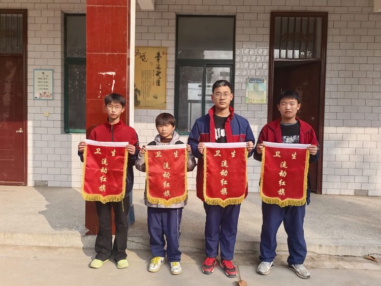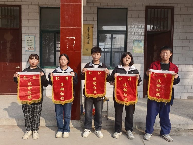 表彰大会结束,权青春主任和田兵主任分别宣布上个月优秀班集体,并颁发流动红旗。