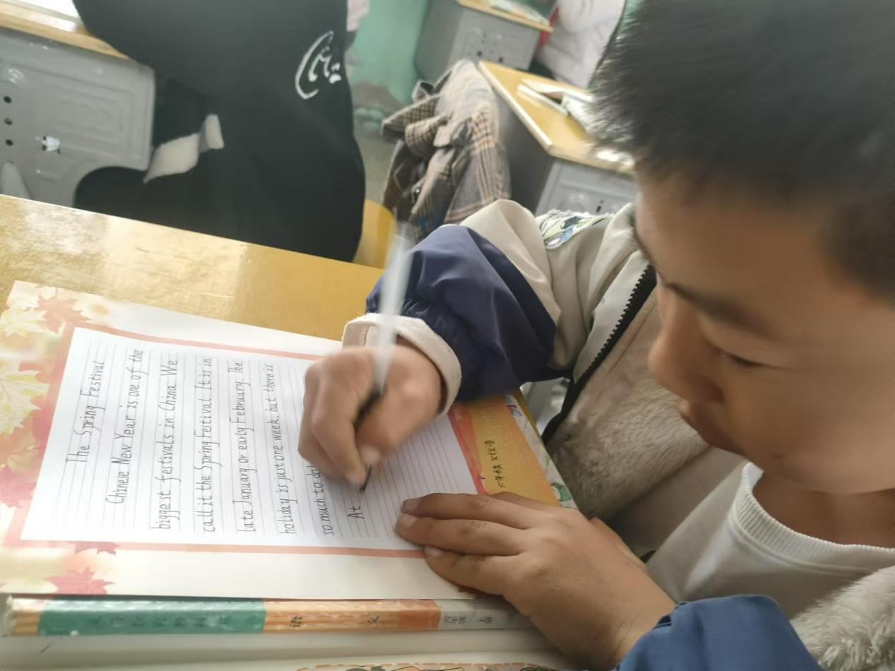 此次比赛兼顾语文与英语和毛笔字,语文书写以课本中的经典篇目为内容,要求同学们在横撇竖捺间把握汉字的间架结构,让每一个汉字都透着方正与大气;英语书写则以基础单词与短句为载体,考验大家对字母笔顺、大小写规范及单词间距的掌握,让每一串字母都尽显流畅与整齐。教室里静得能听到笔尖在纸上划过的“沙沙”声,那声音里,有低年级同学握笔时的小心翼翼,有中年级同学书写时的从容不迫,也有高年级同学运笔时的自信笃定。