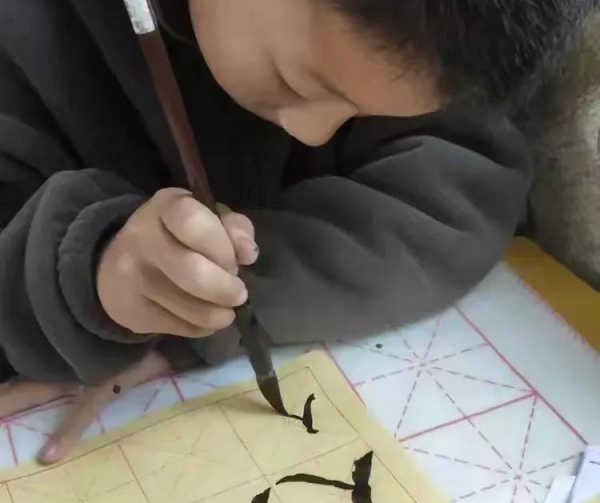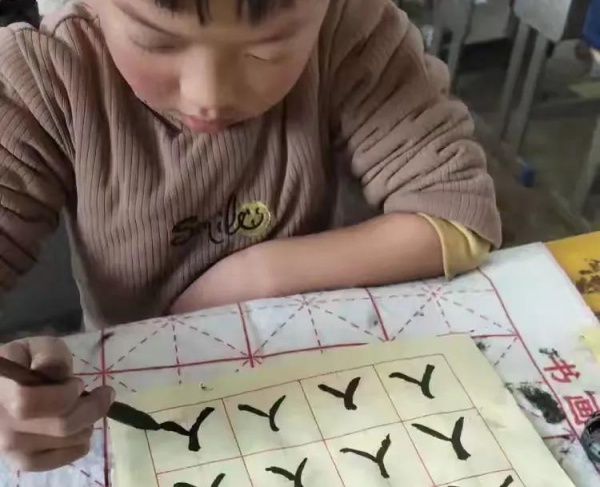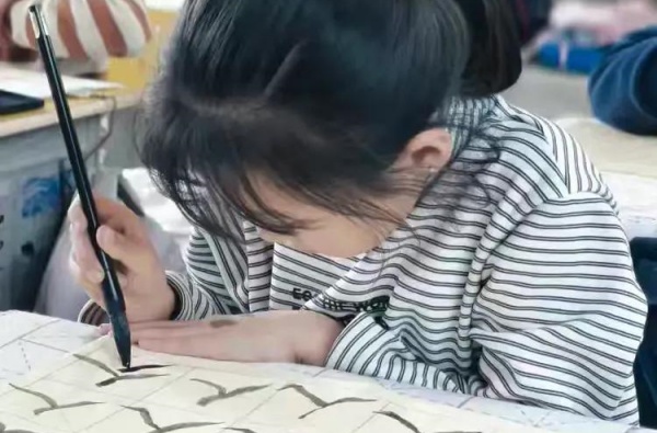 书法入门往往从最基础的横、竖、撇、捺开始。这些简单的笔画需要成千上万次的练习,才能形成肌肉记忆,让手腕与毛笔达到协调。在课堂上,孩子们在专注地练习着……