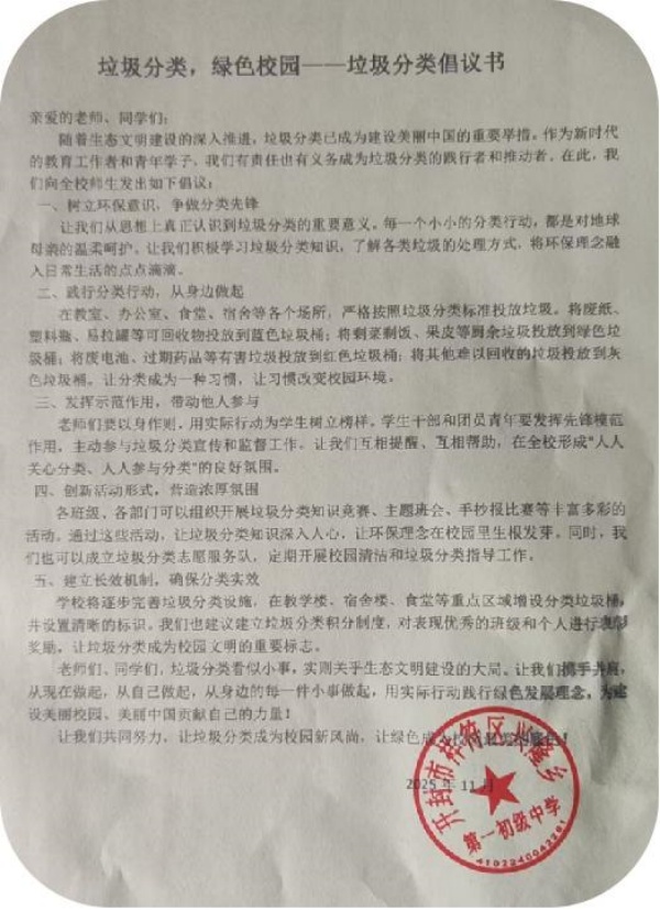 各班还利用午间休息时间开展主题班会,倡导垃圾分类,共创绿色校园,杜绝垃圾食品和一次性物品进校园,讲究个人和集体卫生,爱护公物,倡导“共建绿色生活、绿色班级、绿色校园”。