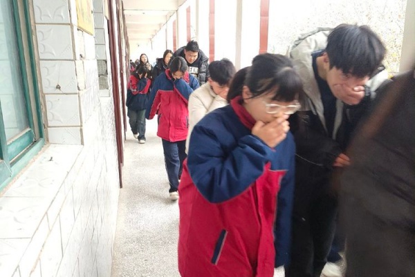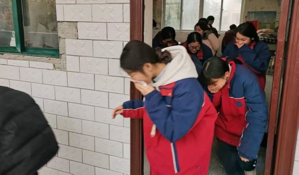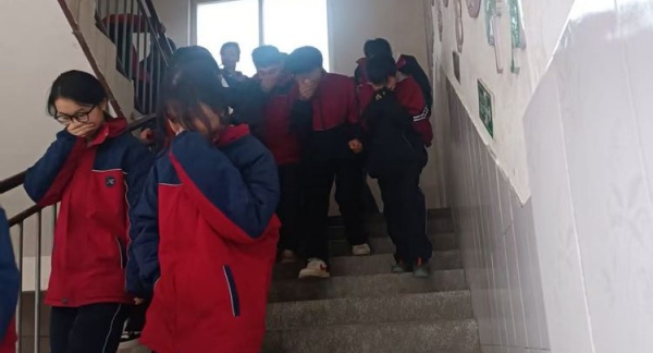 全校师生安全撤离到安全地带后,各班老师清点学生人数,整个疏散演练过程既紧张又有条不紊,没有疏漏一个学生,没有出现碰撞和踩踏事件,达到了预期效果。