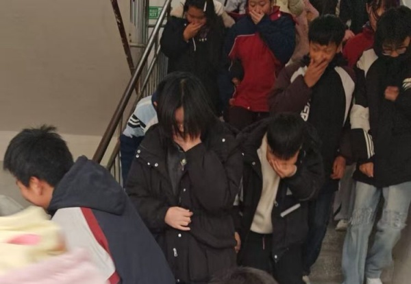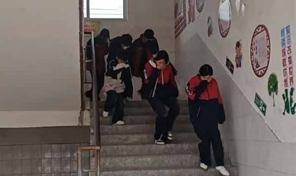 2025年11月24日下午,伴随着警报声响起,演练开始啦!各班教师迅速按消防预案的疏散线路有序带领学生,捂住口鼻,小步快走,迅速且有序撤离下楼。