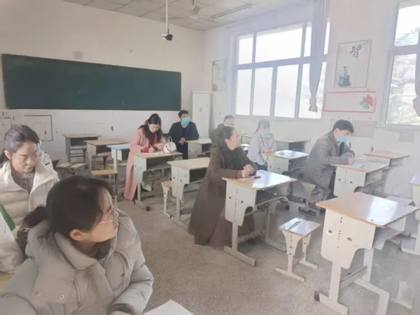 英语教研组长张秋月老师组织英语老师进行评课活动