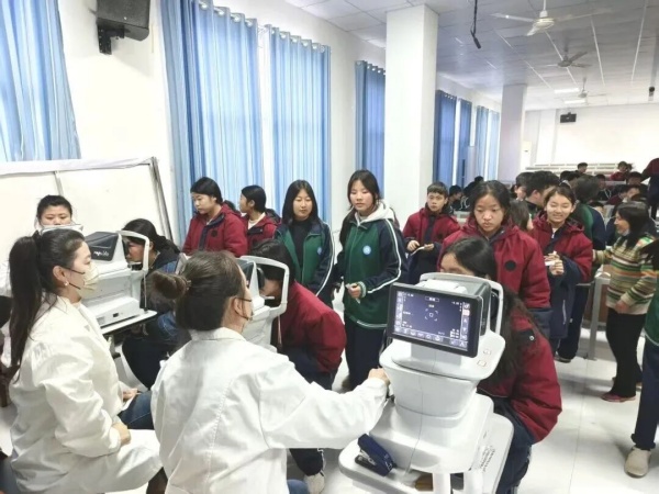 视力测试环节同样井然有序。专业人员提前调试好检测设备,耐心引导学生保持正确坐姿、规范操作流程,通过专业仪器细致检测每一位学生的裸眼视力、矫正视力等指标,详细记录数据并对比分析视力变化趋势。此举不仅让学校精准掌握了学生视力健康底数,更强化了学生“爱眼护眼始于日常”的意识,助力学子养成良好用眼习惯,守护清晰视界,为身心健康筑牢“视觉防线”。