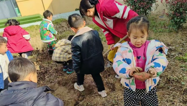 有的红薯藏得深,我们就分工合作:你扶着藤,我挖泥土,他喊口号,小脸憋得通红,汗水顺着额角往下淌,却没人愿意休息。挖到超大红薯时,大家围着它拍手欢呼,小手沾满泥土,却紧紧攥着自己的“战利品”,比拿到糖果还开心。