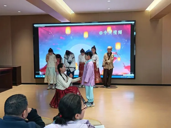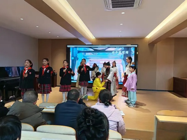 陆游病床前的绝笔吟诵、眼中的家国泪光,高年级孩子以深情表演传递“王师北定中原日”的赤子心,让爱国情怀在童声中滚烫。