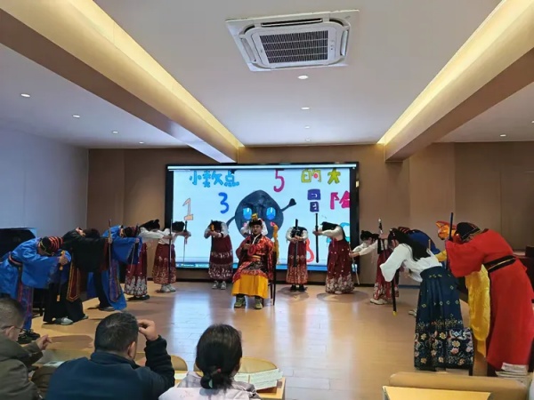 狡黠的狐狸、自夸的商人,孩子们用夸张的神态演绎成语智慧,让“表象与本质”“逻辑与思辨”的哲思悄悄萌芽。