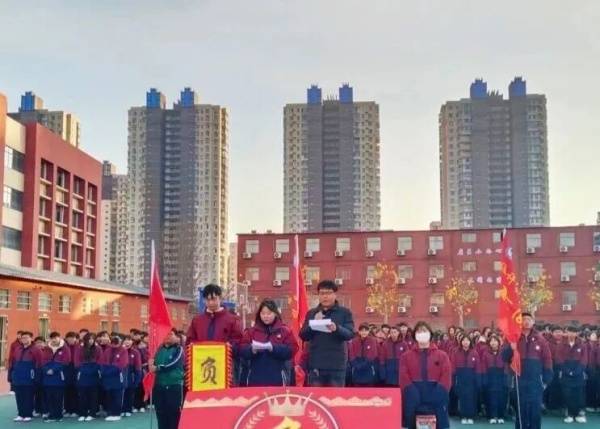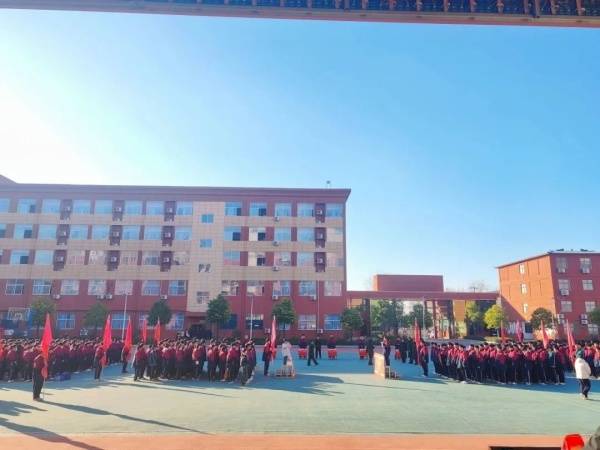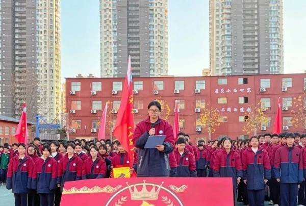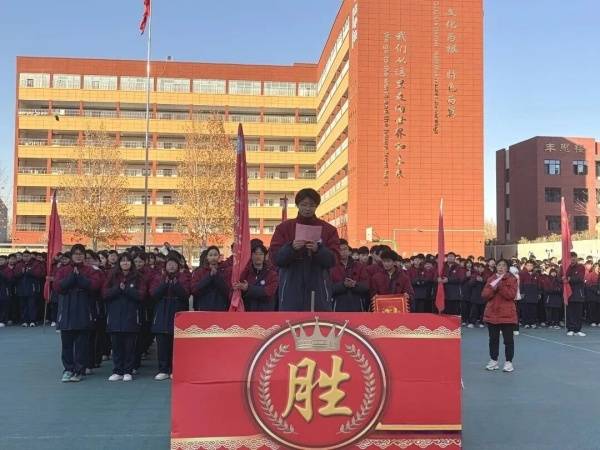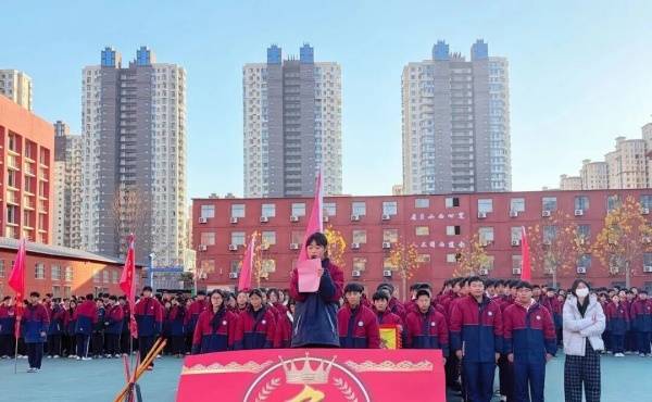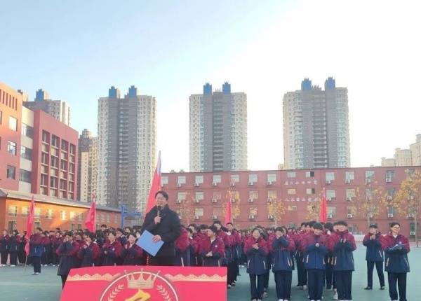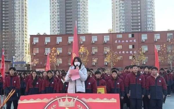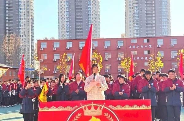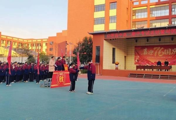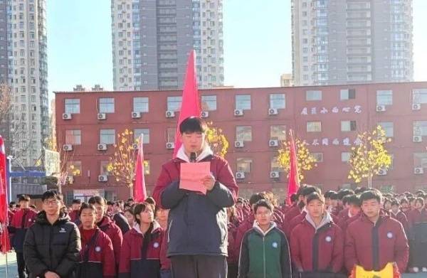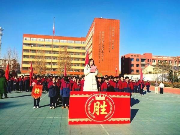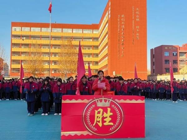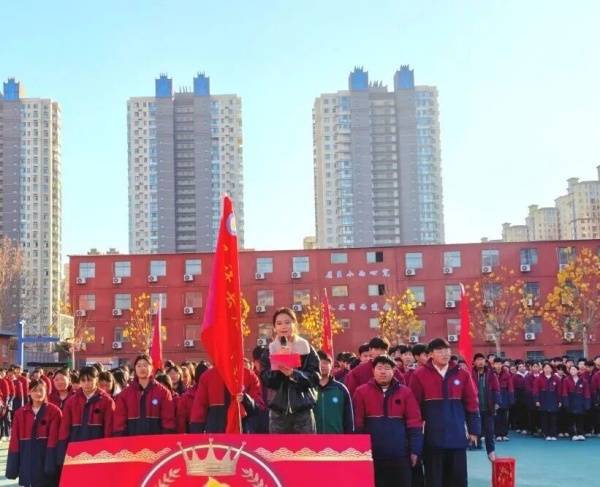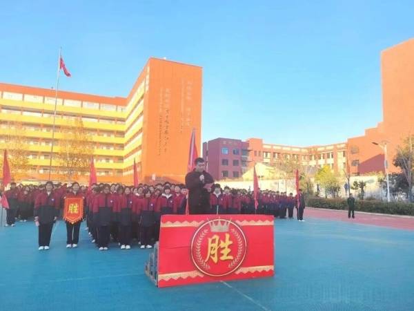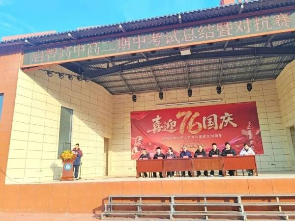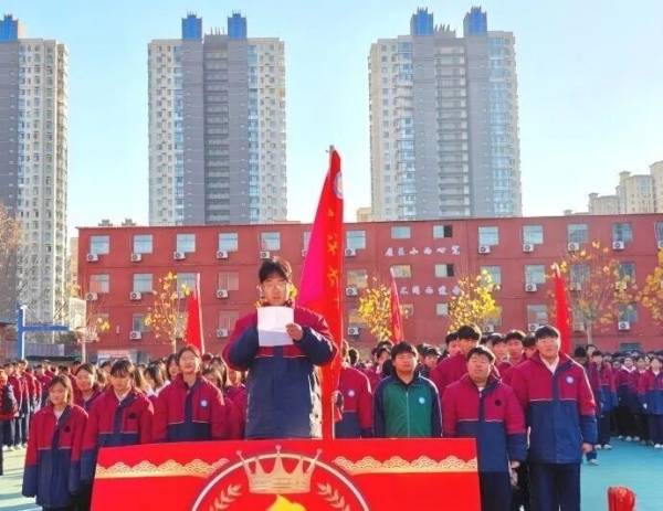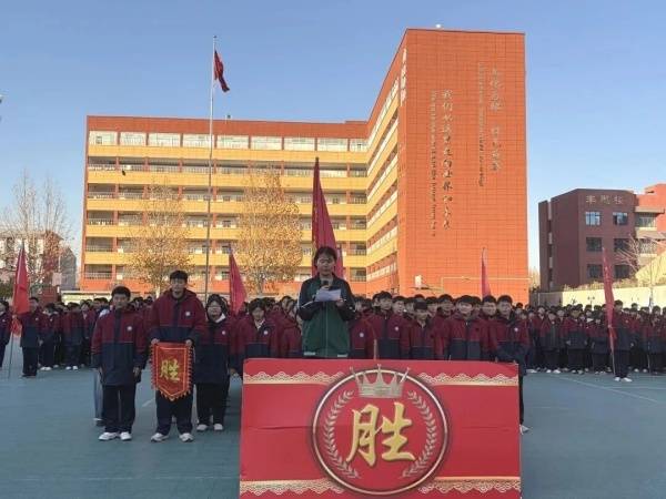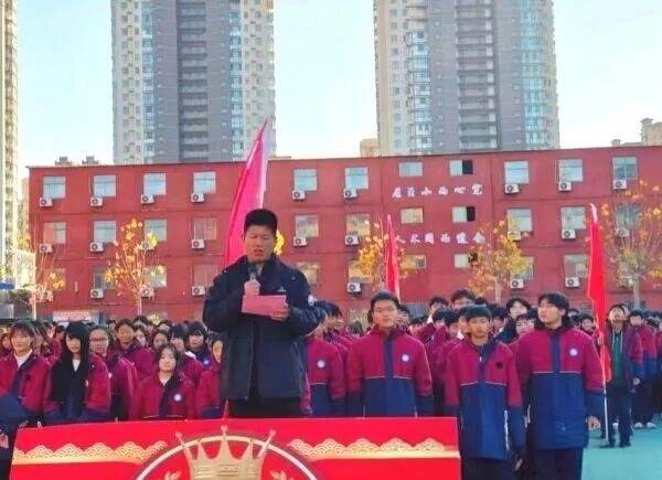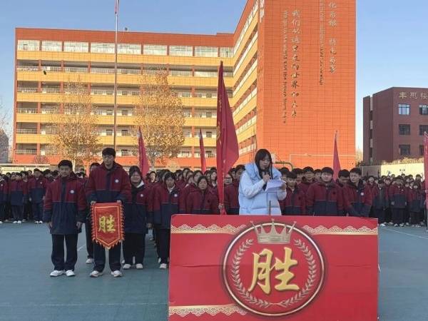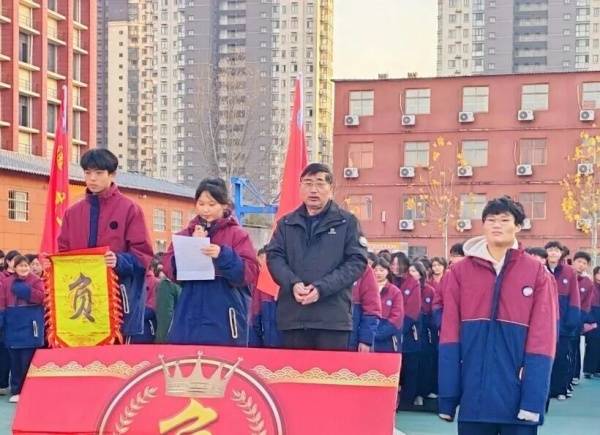 12月4日下午,高二期中考试总结暨班级对抗赛收官仪式在操场隆重举行。高二主任马孝恩主持仪式,学校领导班子与高二全体学子共同见证这一热血时刻。仪式伊始,高二主任王腾云发表讲话,她全面复盘了期中考试的整体情况,既肯定了全体师生的辛勤付出与显著进步,也针对现存问题提出明确改进要求,鼓励同学们以对抗赛为契机,将竞技热情转化为治学动力,在互助共进中突破自我。