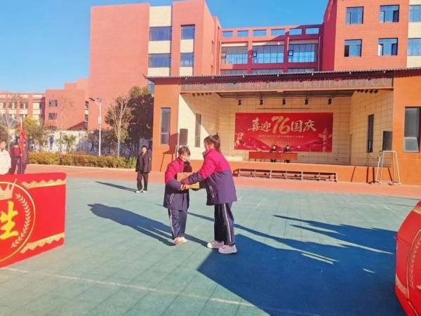 各班代表手持精心准备的礼物,走向对手班级。这份跨越竞争的馈赠,承载着同窗间的惺惺相惜与美好祝福,让赛场的紧张氛围化为脉脉温情。握手、微笑,此刻,胜负已然淡去,友谊与尊重成为赛场最珍贵的收获,也让“比学赶超、互助共进”的理念深深扎根在每一位学子心中。