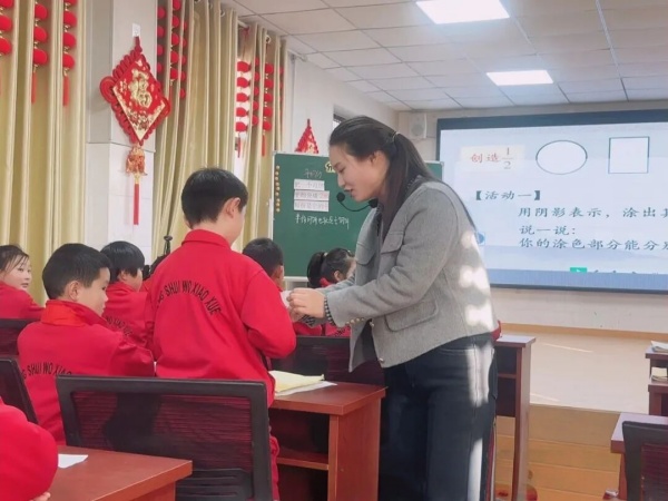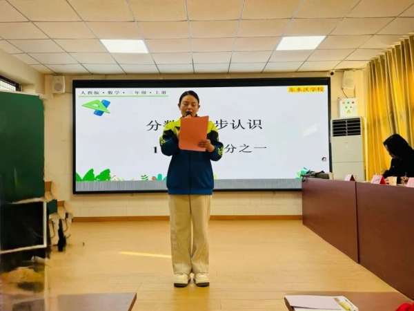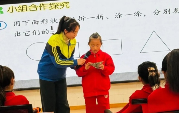 东水沃学校优秀青年教师张颖为三年级的孩子们呈现了一堂“动画激趣+ 探究体验”的数学课堂。张颖老师从哪吒与敖丙分月饼的动画导入,有效激发了学生对分数的认识、兴趣探究。注重以学生为课堂主体,让学生通过小组探究,动手体验等方式,紧扣 平均分 这一核心概念,让学生在探究体验中加深对平均分的认识、理解、应用。完美体现出东水沃学校“目标教学 高效课堂 ”——课前胸中有书,课上目中有人,教学效果心中有数。体现出张颖老师对新课标的精准把握和积极探索及扎实驾驭课堂的素养。
