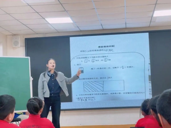 通许县第三实验小学李璨以中秋分月饼生活场景引入课堂,依据学生的认知特点,知识梯度层层递进。从课前调查到al的运用,从分数的讲解到分数的拓展,体现出李老师对新课标的深度理解和扎实的教学基本功。