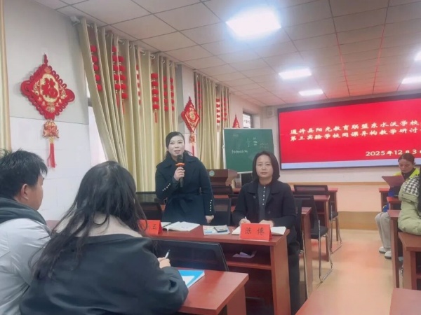 近日,为深研新课标,深化课堂教学,促进区域教育资源的融合共进。通许县东水沃学校与通许县第三实验学校在东水沃学校南三楼进行了同构异课教学研讨会。通许县教体局教研室副主任周新艳、阳光联盟校校长陈博、东水沃学校校长李香玉及东水沃学校三十余名数学学科教师参与了此次同课异构教学实践研讨会。