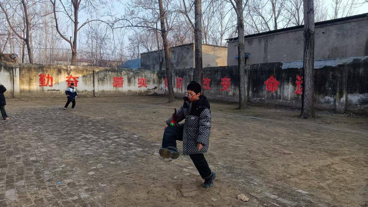 踢毽子的孩子们围在一起,彩色的毽子在脚尖、膝盖间起落。大家互相学习技巧,偶尔传来阵阵欢呼。