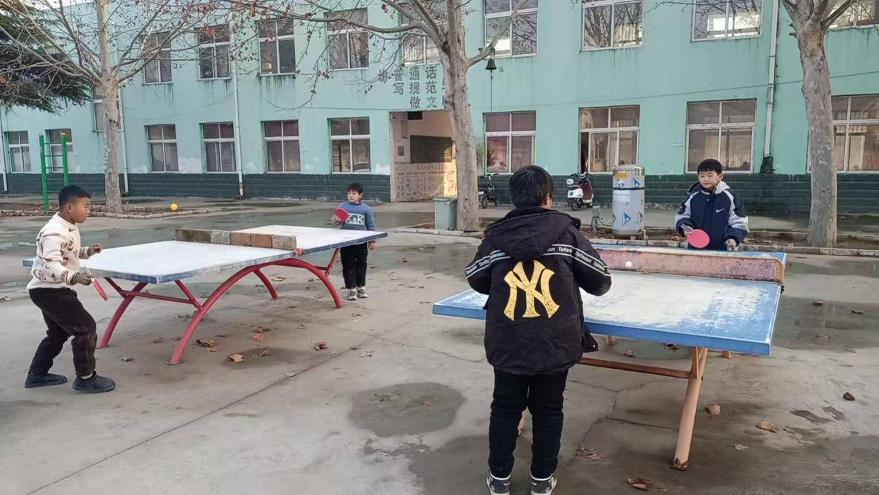 乒乓球台前,孩子们手握球拍,专注地发球、接球。小小的银球在球台上来回跳动,锻炼着手眼协调能力。