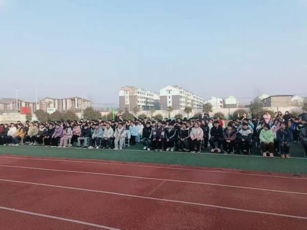 2025年12月24日下午,朱仙镇第一初级中学在操场举行师生法制报告会。会议由学校副书记朱亮主持,法制副校长黄鸿代表学校特邀开封市祥符区检察院第五检察部检察官助理张豪主讲,主题为"在法治阳光下幸福成长"。