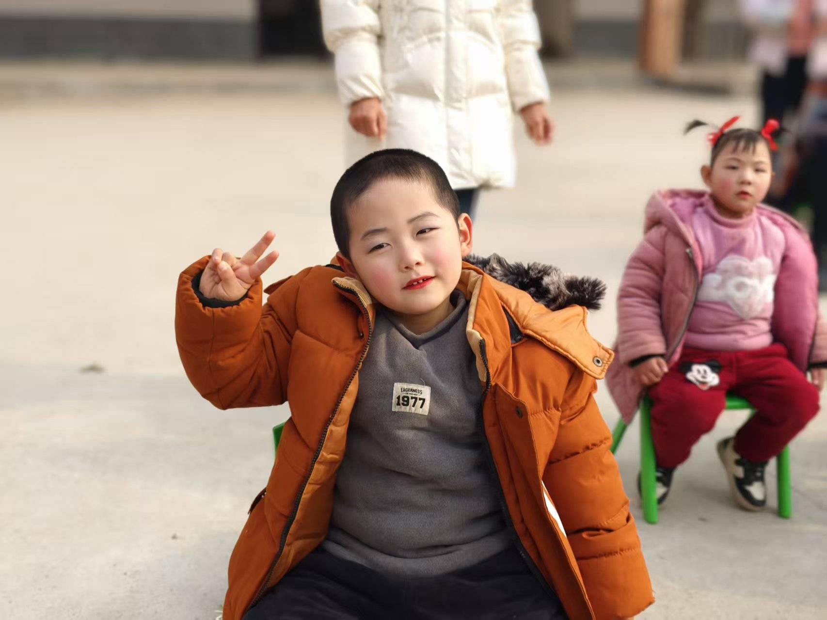 伴随着欢快的音乐,大班的小朋友们迈着整齐的舞步登场。红红的腮红衬着笑脸,动作虽稚嫩却充满力量。
