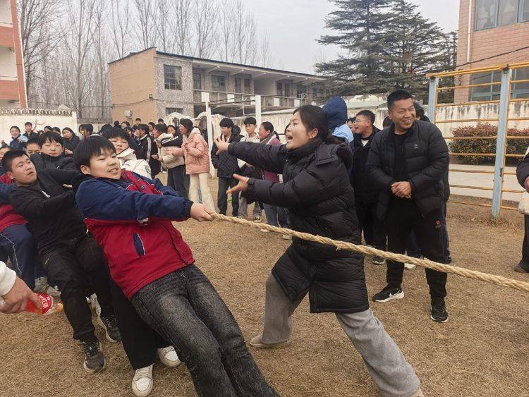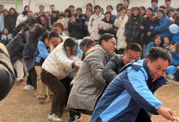 “元春始风华,万象启新朝”。在2026年元旦即将到来之际,2025年12月30日下午我校操场上,欢声如潮、热闹非凡,一场激情四溢的拔河比赛正式拉开帷幕,宛如冬日里的一把火,点燃了整个校园的活力与热情。