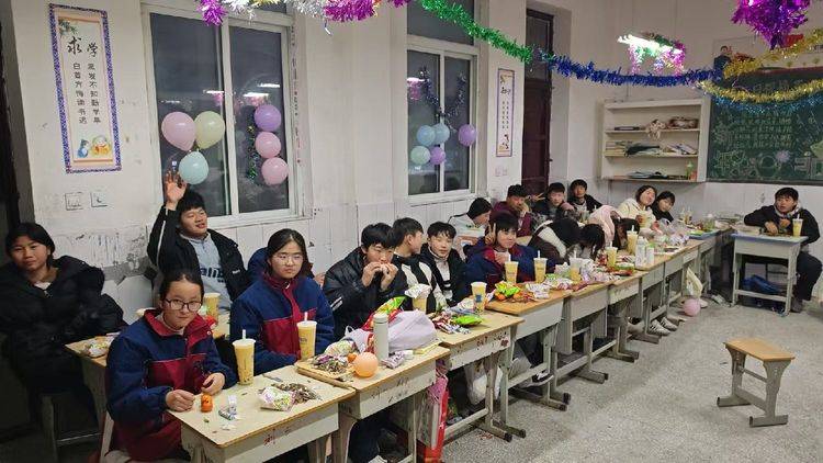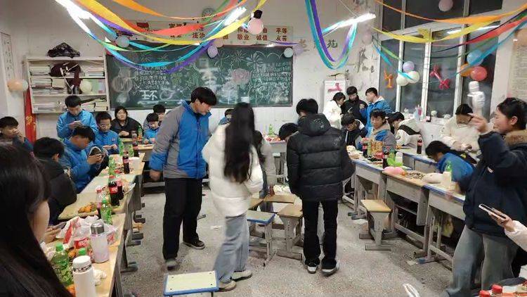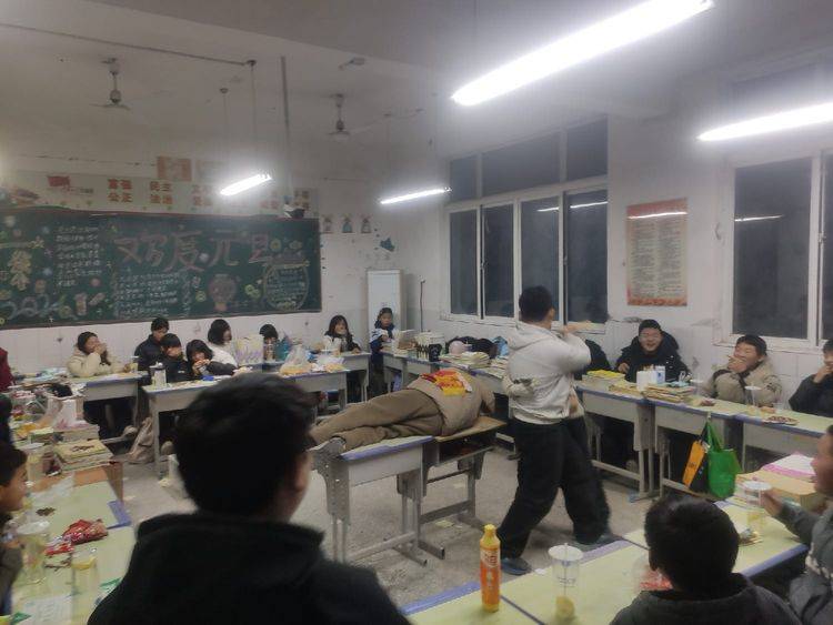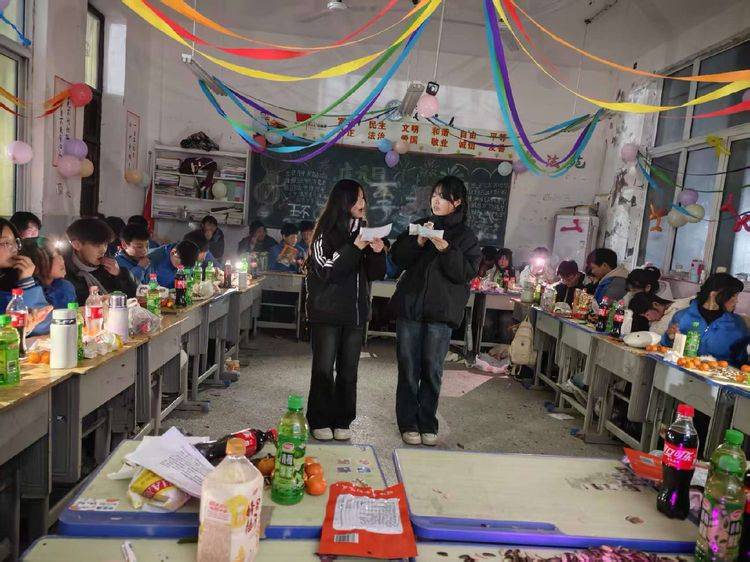 夜幕降临,各班教室张灯结彩,元旦晚会热闹开场。同学们带着赛场的余温轮番登台各展所长、大显身手,满室欢腾,尽显迎新的喜悦。