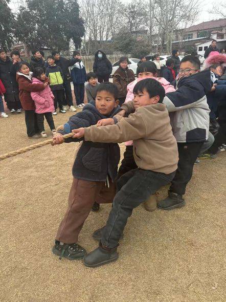 为丰富校园文化生活,增强学生体质,培养团队协作精神和集体荣誉感,2025年12月31日下午,刘店乡中心学校在操场隆重举行了一场别开生面的拔河比赛。本次活动由全校各年级积极参与,现场气氛热烈,呐喊声、加油声此起彼伏,充分展现了我校师生昂扬向上的精神风貌。