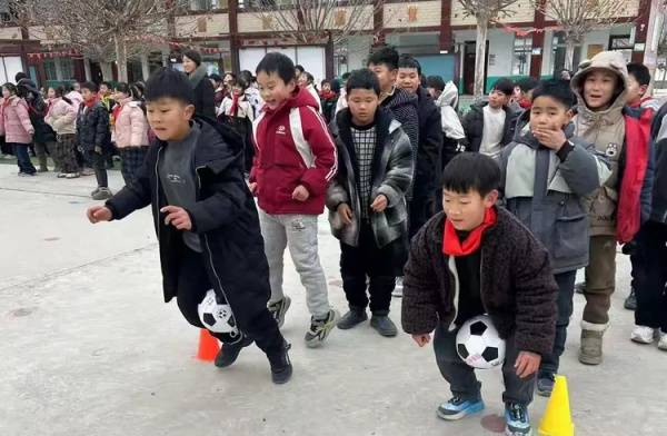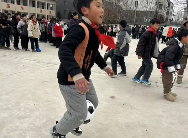 我看到了一场别开生面的趣味训练——运球挑战、“默契大挑战”,叠砖走……每一项都充满童趣与活力。彩色方块与锥形标志点缀在水泥地上,像冬日里悄然绽放的花。有人弯腰前行,有人单脚跳跃,笑声在空旷的场地上回荡。