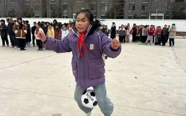 孩子们在操场上追逐足球的身影跃入眼帘,有的蹲身凝视,有的腾空踢球,黑白相间的皮球在灰白地面上划出灵动轨迹。不远处,少年们在冰面边缘跃起,羽绒服在风中鼓动,仿佛冬日里跳动的火焰。他们专注的眼神、飞扬的姿态,让寒冷也退却三分。